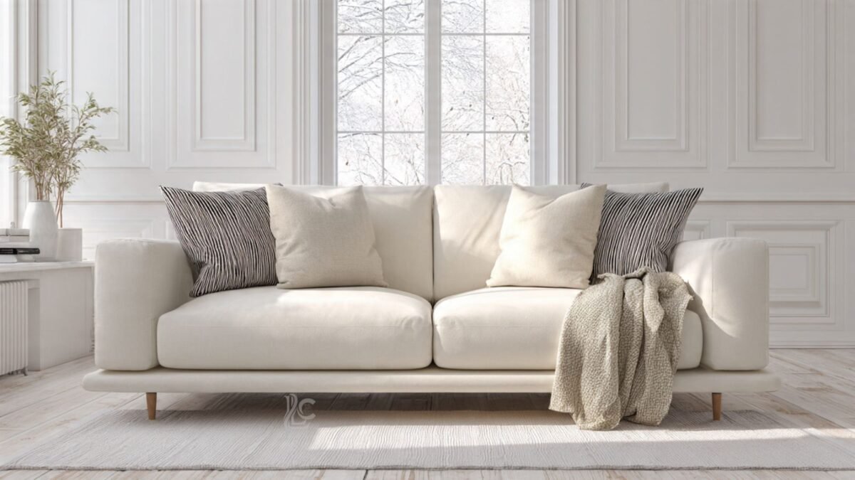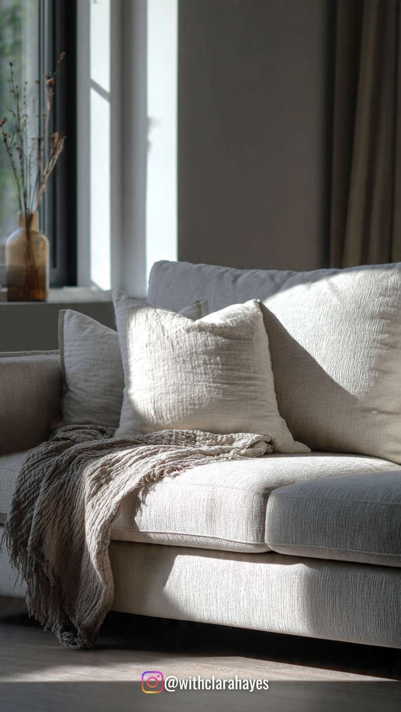 A clean-lined sofa in a natural fabric changed everything. No bold patterns, no trendy shapes. Just something comfortable enough to sink into at the end of the day.