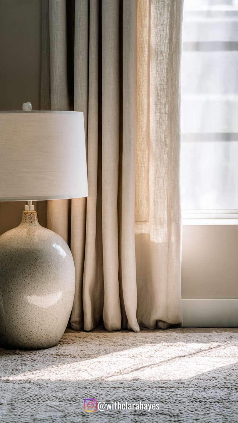 Linen curtains that move with the air. A wool rug under bare feet. A ceramic lamp base that feels cool to the touch.