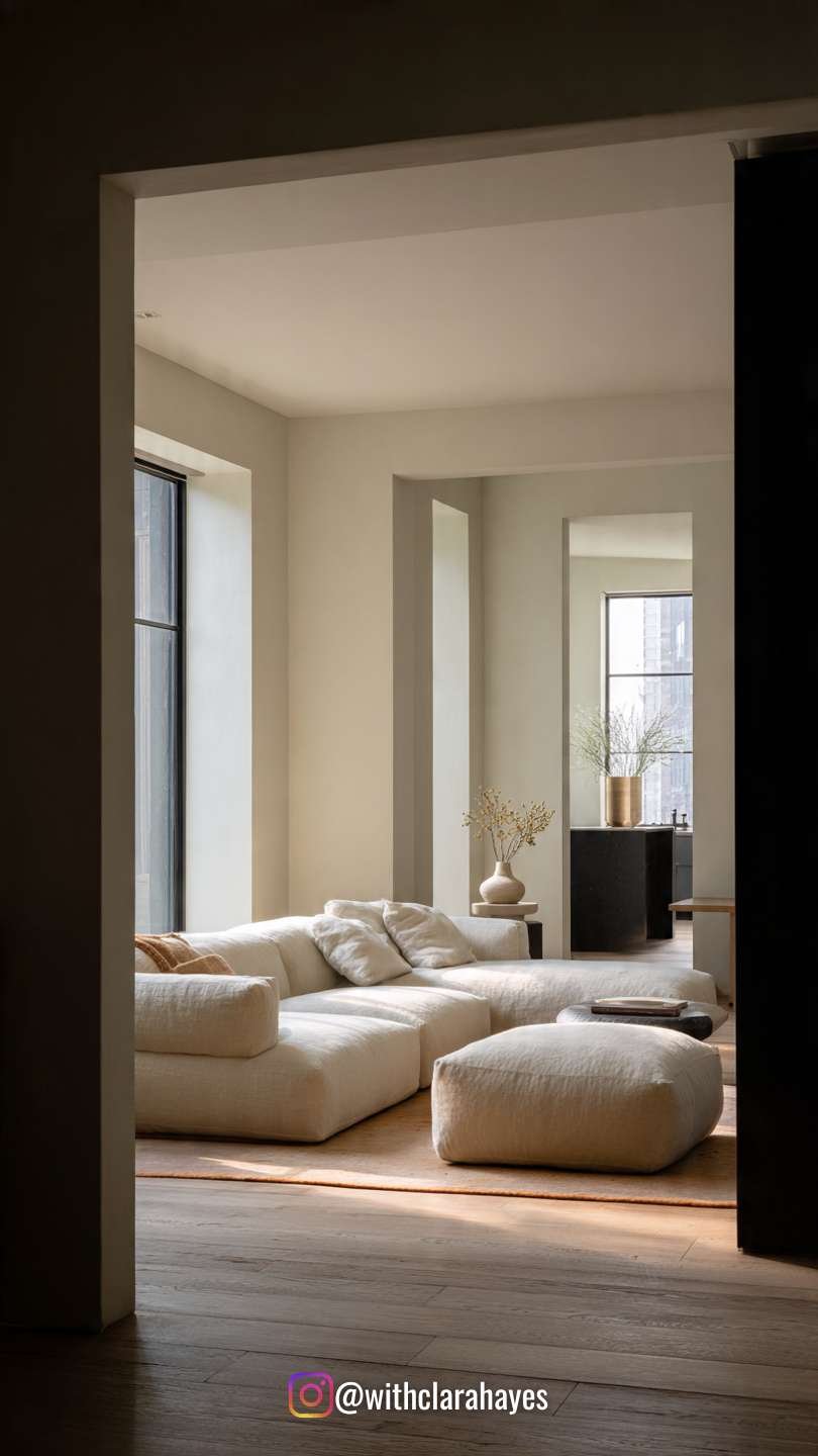 Minimalist living rooms don’t need perfect layouts — they need good light and comfortable flow.
